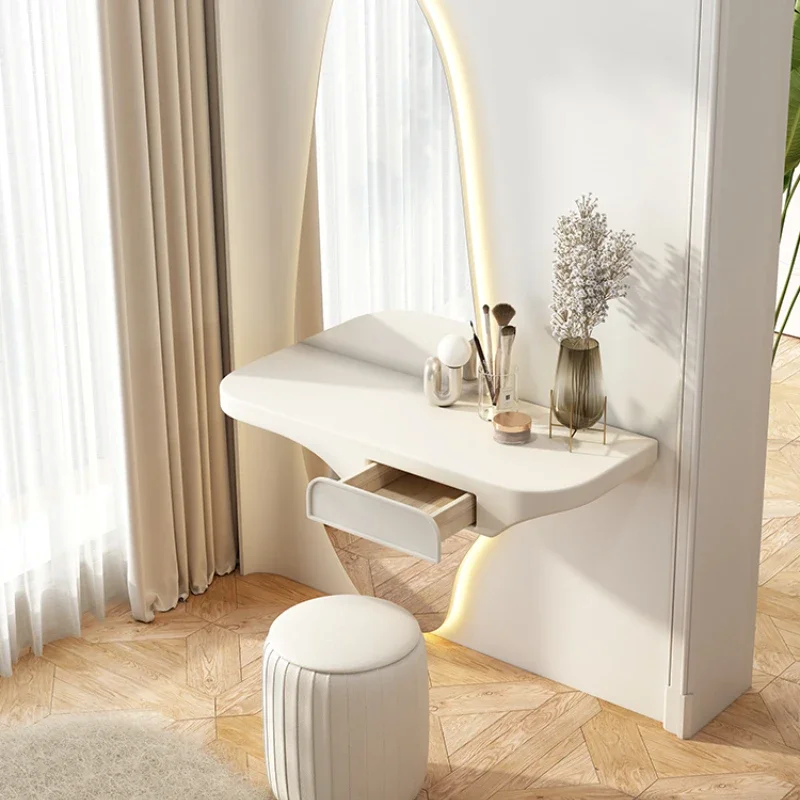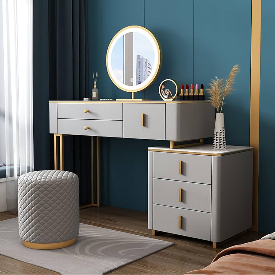 1. Bàn trang điểm hiện đại:Thiết kế đơn giản, tích hợp đèn LED, bàn trang điểm thông minh đa năng.