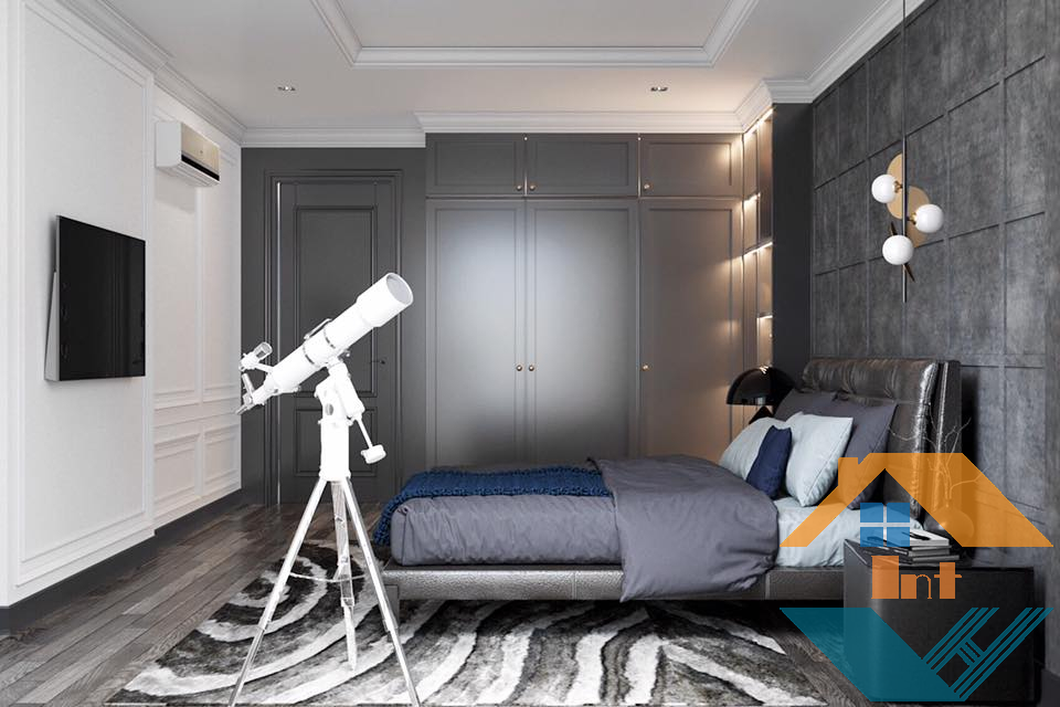Không gian căn phòng chỉ với hai gam màu chủ đạo trắng và ghi mang lại cảm giác vô cùng nhẹ nhàng, yên tĩnh mà rất nổi bật.
