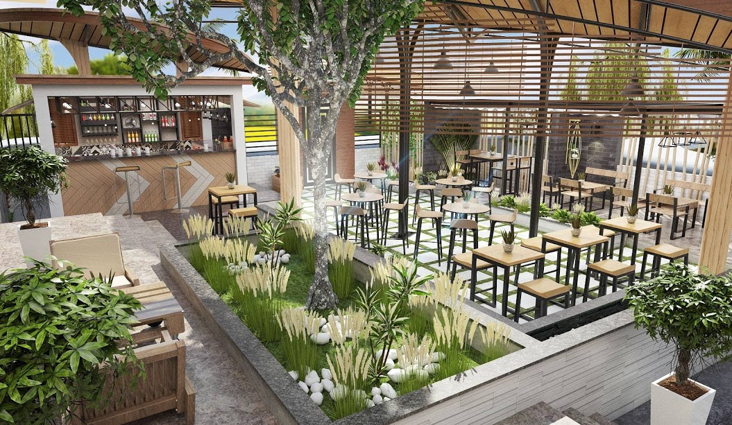 Thiết kế cảnh quan nhà hàng sinh động và thân thiện với môi trường tự nhiên chắc chắn sẽ thu hút khách hàng và mang đến cho bạn một khoản doanh thu không ngờ. Mang đến cho khách hàng sự gần gũi với thiên nhiên, thưởng thức những món ăn trong một khu vườn với vẻ đẹp của chúng chắc chắn sẽ khiến cho bạn cảm thấy ngon miệng hơn, vui vẻ, một cảm giác tuyệt vời.