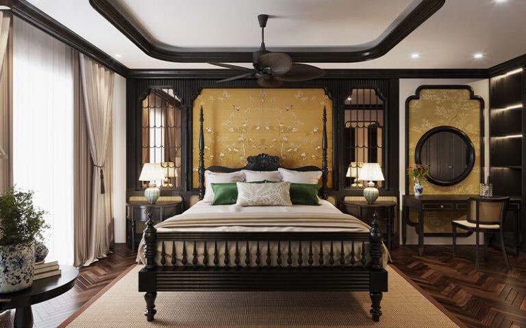 Đặc trưng nổi bật của Indochine nằm ở việc sử dụng vật liệu tự nhiên như gỗ, đá, gạch bông, mây tre, kết hợp cùng đồng, sắt mỹ nghệ, hoa văn truyền thống và bảng màu trầm ấm mang đậm dấu ấn nhiệt đới, rất phù hợp với khí hậu của Việt Nam.