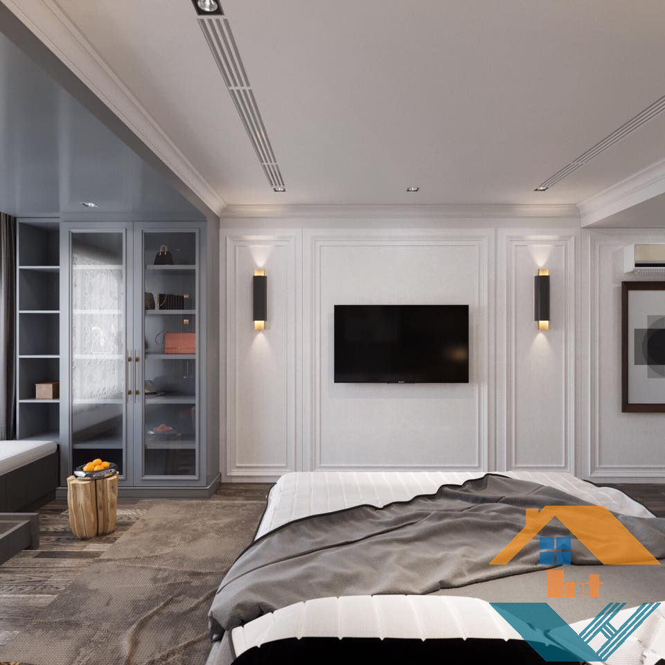 Không gian căn phòng chỉ với hai gam màu chủ đạo trắng và ghi mang lại cảm giác vô cùng nhẹ nhàng, yên tĩnh mà rất nổi bật.