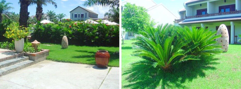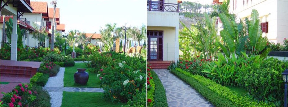 Thiết kế cảnh quan tạo nên sự cân bằng của các khu vực tự nhiên và các khu vực được xây dựng, cụ thể ở đây là những thành phần được ốp lát và các thành phần khác như, hoa, cây xanh, đồ gốm sứ,  hồ bơi..... tạo nên một không gian thiên nhiên hoàn hảo và đầy sức sống.